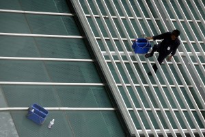Pekerja membersihkan jendela salah satu bangunan hotel di kawasan Jakarta Pusat, Selasa, 29 Desember 2009. Lembaga Ilmu Pengetahuan Indonesia (LIPI) memprediksi perekonomian Indonesia tahun 2010 dapat lebih tinggi dari target pemerintah, yang dipatok 5,5%, asalkan pemerintah memegang komitmen awal, dengan mendorong laju industrialisasi dan pertumbuhan sektor infrastruktur. == JP/ J. Adiguna