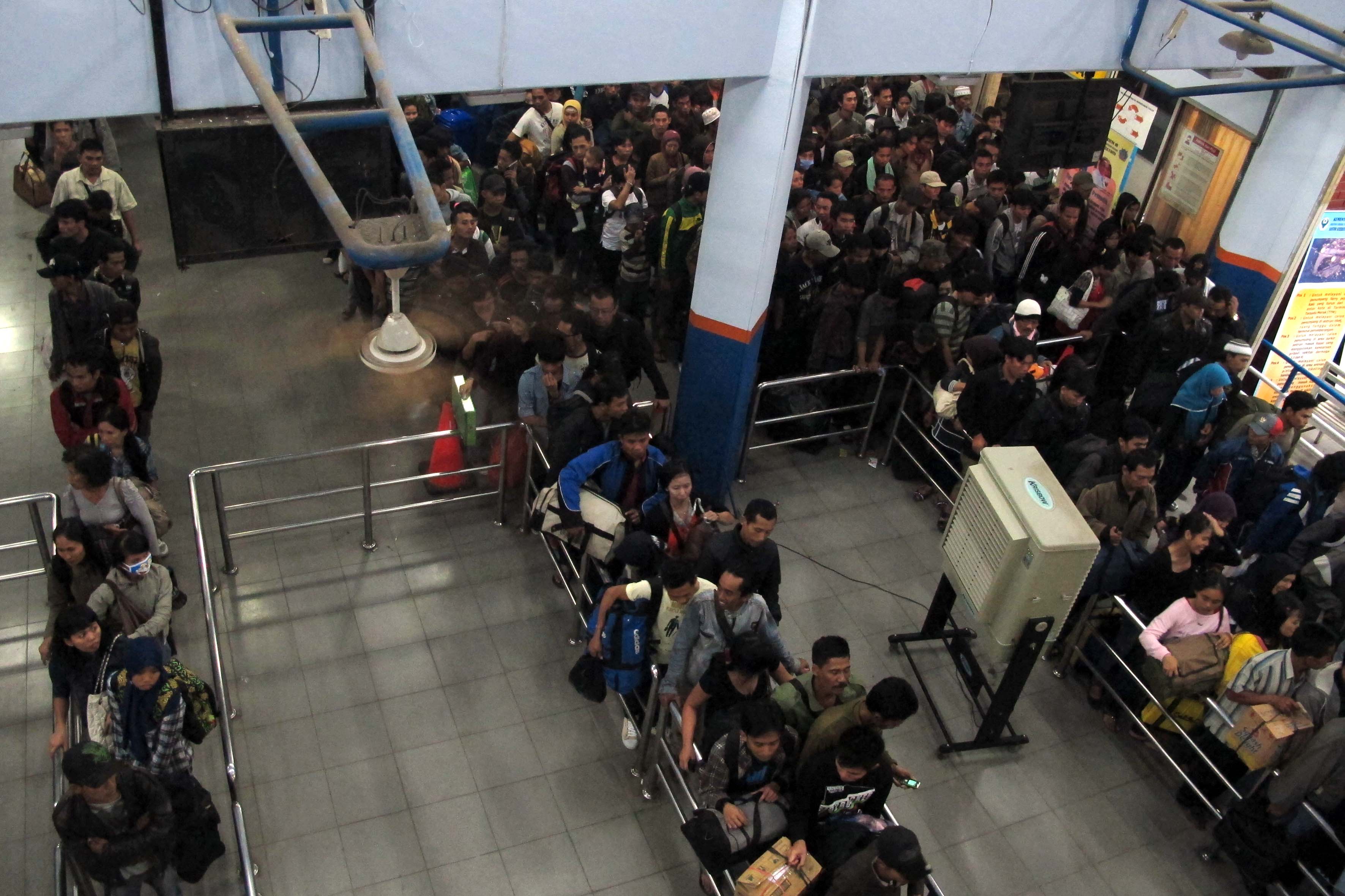 JPVJA110827001P Warga berjejalan antri untuk mendapatkan tiket ferry di pelabuhan Merak, Banten, 27 Agustus 2011. – JP/ Jerry Adiguna Leave a comment
