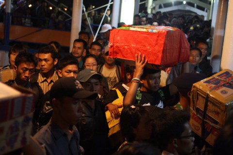 JPVJA110827006P Warga berjejalan antri untuk naik ke kapal ferry di pelabuhan Merak, Banten, 27 Agustus 2011. – JP/ Jerry Adiguna Leave a comment