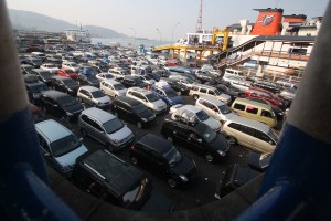 JPVJA110827042P Warga berjejalan antri untuk naik ke kapal ferry di pelabuhan Merak, Banten, 27 Agustus 2011. – JP/ Jerry Adiguna Leave a comment