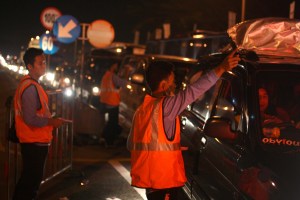 Petugas ASDP membagikan formulir data penumpang di pintu tol Merak, Banten, sebagai bagian dari prosedur keselamatan angkutan kapal Ferry yang berangkat dari pelabuhan Merak, Banten, 27 Agustus 2011. – JP/ Jerry Adiguna