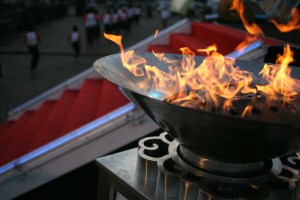 Api Sea Games XXVI menyala saat acara relay pembukaan Sea Games XXVI di Monas, Jakarta, yang di selenggarakan oleh Pemerintah Daerah Ibu Kota Jakarta untuk memeriahkan pelaksaan Sea Games XXVI di Indonesia, 11 November 2011. – JP/ Jerry Adiguna