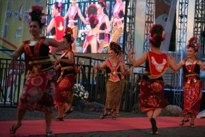 Penari dengan kostum khas betawi tampil pada acara relay pembukaan Sea Games XXVI di Monas, Jakarta, yang di selenggarakan oleh Pemerintah Daerah Ibu Kota Jakarta untuk memeriahkan pelaksaan Sea Games XXVI di Indonesia, 11 November 2011. – JP/ Jerry Adiguna