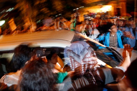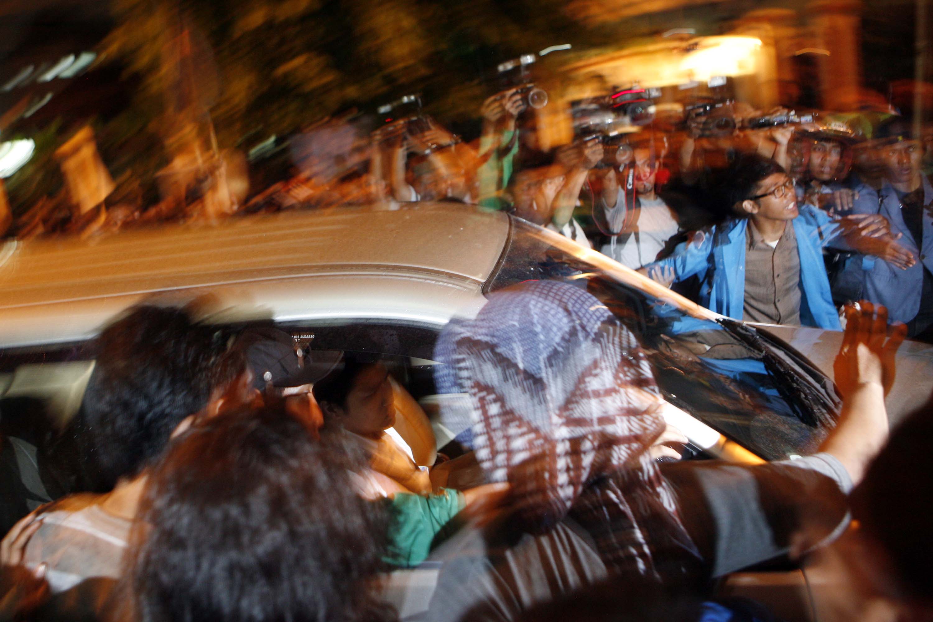 Sejumlah aktivis mahasiswa yang tergabung dalam Konsolidasi Nasional Mahasiswa Indonesia (KONAMI) berusaha mengamankan sebuah mobil yang menerobos blokade mahasiswa yang menutup jalan saat melakukan aksi long march menolak rencana kenaikan BBM di kawasan Proklamasi, Jakarta, Rabu, 28 Maret 2012. Menjelang finalisasi rencana kenaikan BBM yang masih di bahas di DPR, sejumlah aksi penolakan yang dilakukan oleh mahasiswa dan elemen gerakan buruh semakin marak terjadi di sejumlah wilayah Indonesia. – JP/ Jerry Adiguna