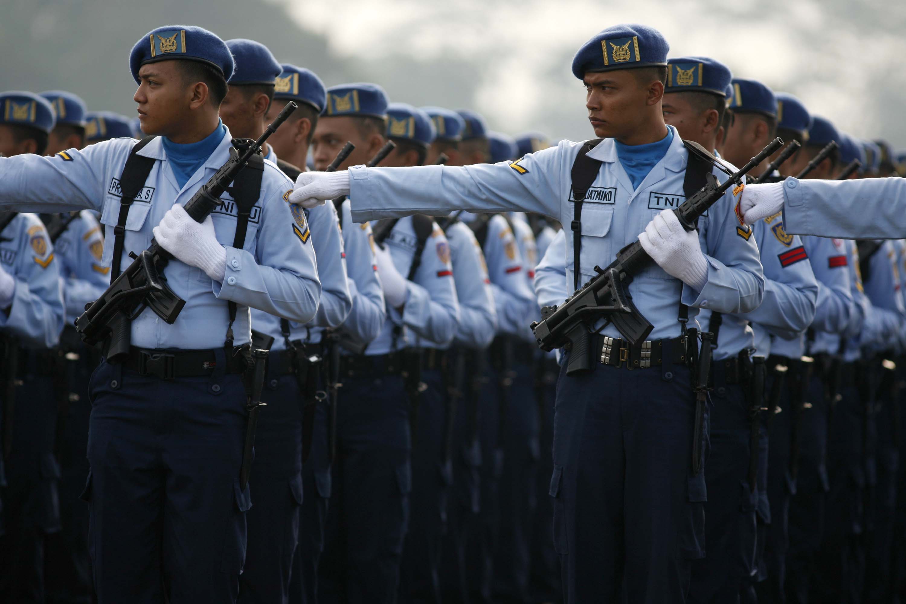 Prajurit TNI-AU berbaris di area upacara peringatan HUT ke-66 TNI-AU di Pangkalan Udara TNI AU Halim Perdanakusuma, Jakarta Timur, Senin, 9 Januari 2012. Peringatan Hari Angkatan Udara yang melibatkan 2.560 Personel TNI AU itu dilanjutkan dengan demo udara dan keterampilan prajurit TNI AU. – JP/ Jerry Adiguna