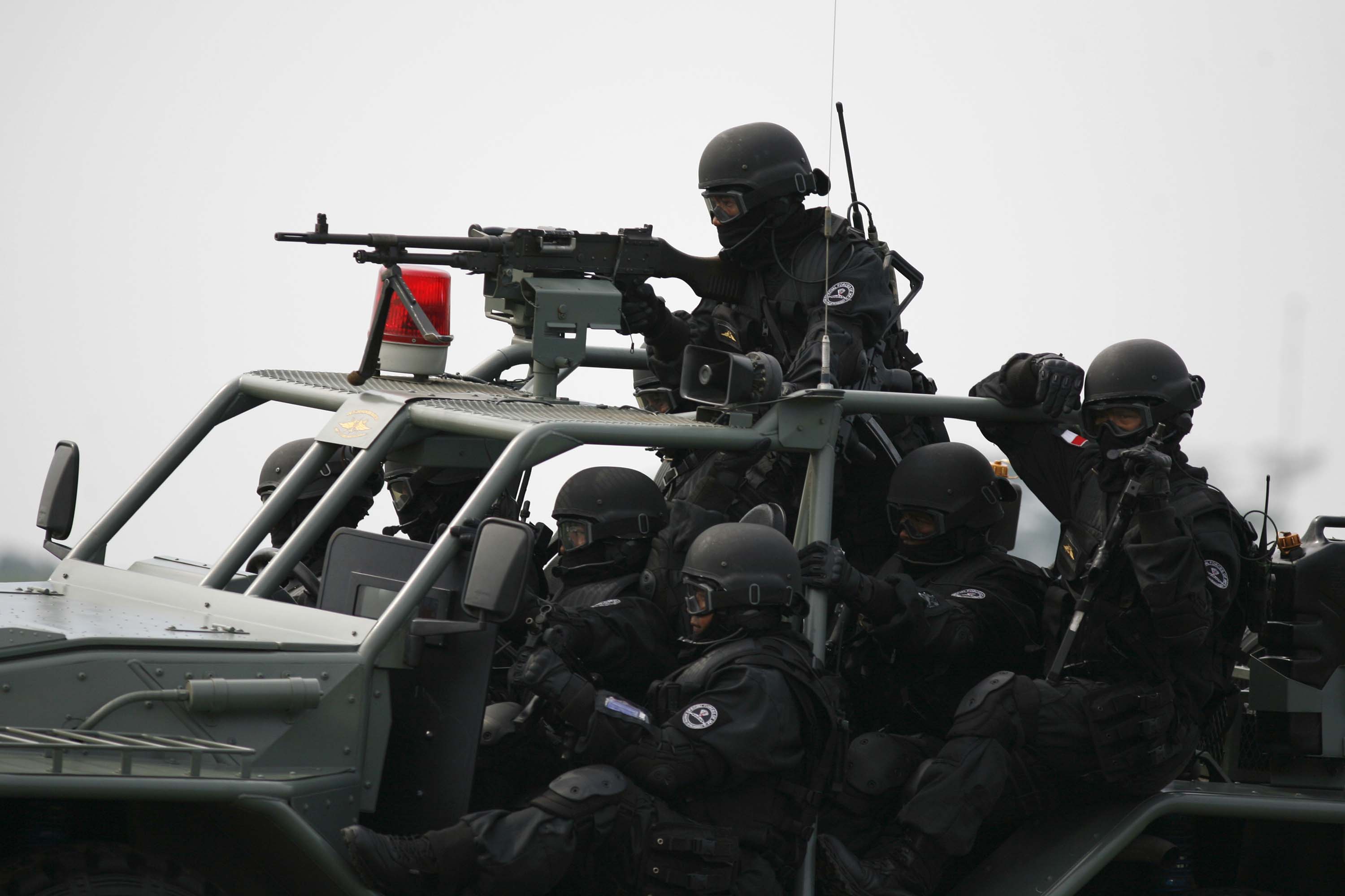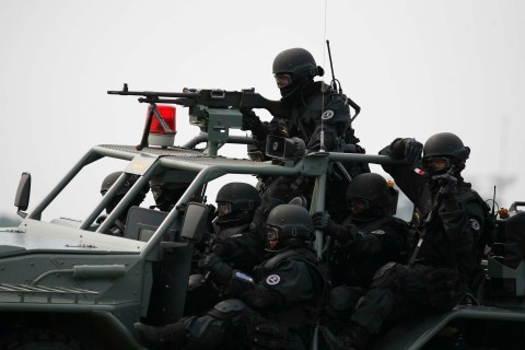 ejumlah prajurit DenBravo Paskhas TNI AU melakukan demo anti teror pada peringatan Hari Angkatan Udara ke-66 di Pangkalan Udara TNI AU Halim Perdanakusuma, Jakarta Timur, Senin (9/4). Peringatan Hari Angkatan Udara yang melibatkan 2.560 Personel TNI AU itu dilanjutkan dengan demo udara dan keterampilan prajurit.