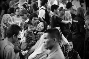 A woman hold her daughter while waiting for a train in Tanah Abang Train Station, Jakarta, August, 2012. – The Jakarta Post / Jerry Adiguna